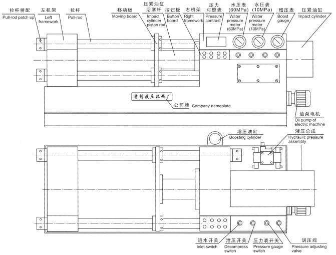 四、接通電源,按油泵起動,檢查電機(jī)轉(zhuǎn)動方向是否正確(順時針方向),調(diào)節(jié)油泵壓力在5 0MPa進(jìn)行試機(jī),檢查各管路有無泄漏,發(fā)現(xiàn)不良現(xiàn)象應(yīng)立即進(jìn)行檢修。