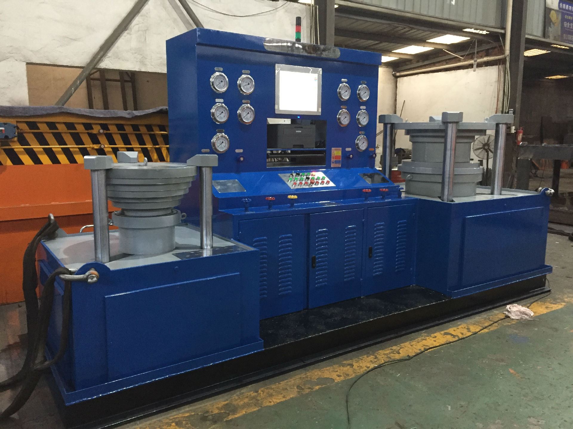 工作過(guò)程:根據(jù)閥門的公稱通徑和壓力調(diào)整油缸壓緊壓力——壓緊工件——打開低水泵快速注水——打開高壓水泵——保壓計(jì)時(shí)——卸壓、復(fù)位。